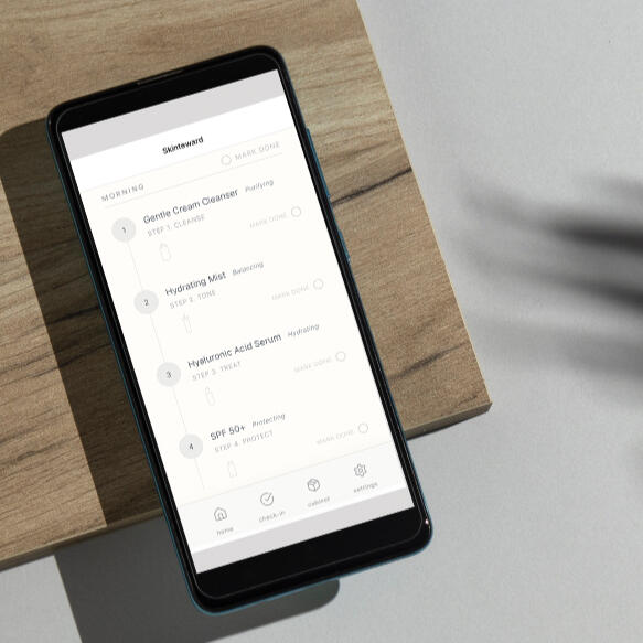 Skinteward analyzes your current products to create the perfect daily routine based on real-time environmental data